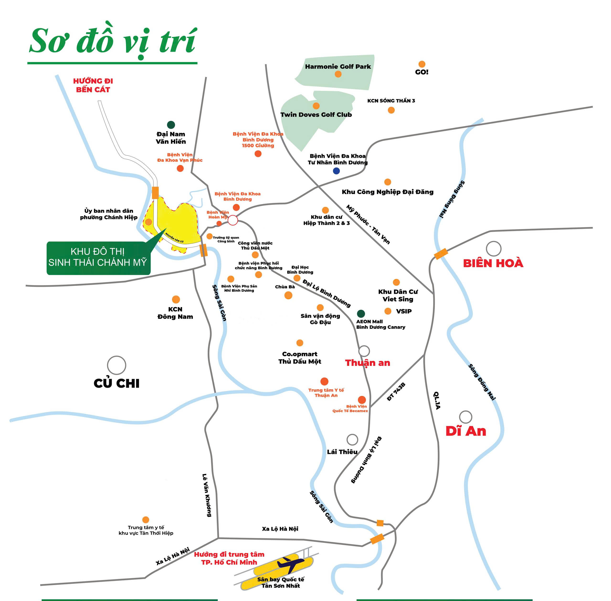 Khu Đô Thị Sinh Thái Chánh Mỹ (Giai đoạn 1) tọa lạc tại phường Chánh Hiệp, Thành phố Hồ Chí Minh (trước đây là phường Chánh Mỹ, thành phố Thủ Dầu Một, tỉnh Bình Dương). Được quy hoạch theo dạng uốn cong phía Tây sát bờ sông Sài Gòn, với đường trục lộ giới 32m Nguyễn Văn Cừ, dự án sở hữu vị trí địa thế “Phong Thủy Vượng Tài”.