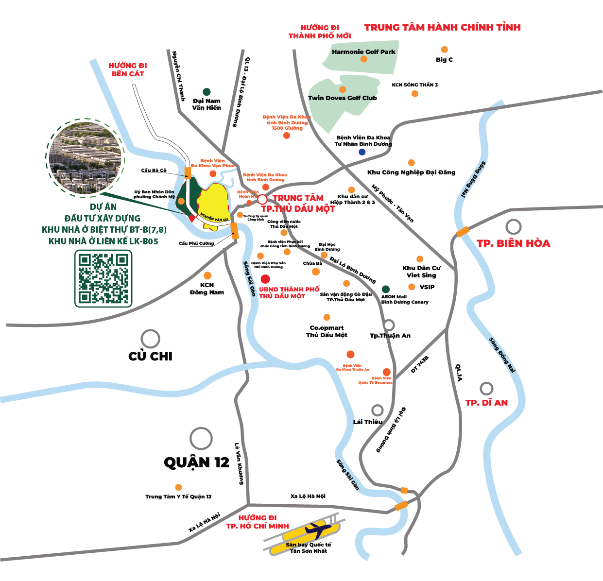 Dự án nằm ngay mặt tiền đường Nguyễn Văn Cừ tại phường Chánh Hiệp, Thành phố Hồ Chí Minh (trước đây là phường Chánh Mỹ, thành phố Thủ Dầu Một, tỉnh Bình Dương). Điểm nhấn là khả năng kết nối với nhiều trục đường chính giúp cư dân dễ dàng di chuyển đến trung tâm TP. HCM, Củ Chi, Sân bay quốc tế Long Thành và các tỉnh Miền Đông Nam Bộ.